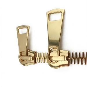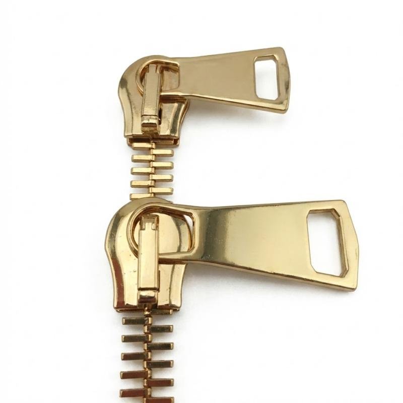 This metal zipper slider with big puller is made from durable copper with plating finish. Designed for garments, bags, shoes, and other fashion items, it features an auto lock mechanism for secure fastening. Nickel‑free, eco‑friendly, and washable, it is customizable in size to meet diverse fashion and commercial applications.