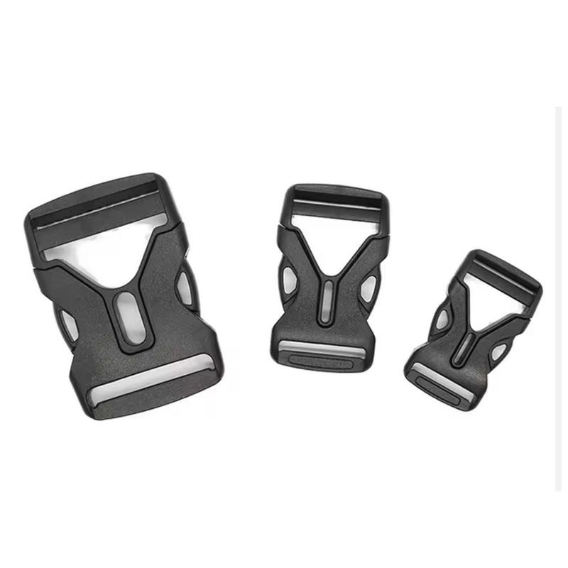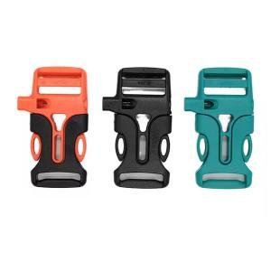 This adjustable chest strap buckle is made from durable plastic material for long-lasting outdoor use. It features a quick-release design with an integrated survival whistle, ideal for hiking and trekking backpacks. Perfect for bag accessories, offering secure fit, lightweight comfort, and eco-friendly performance.