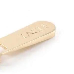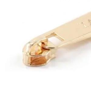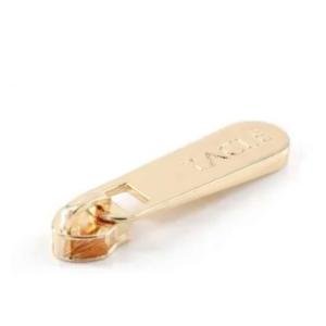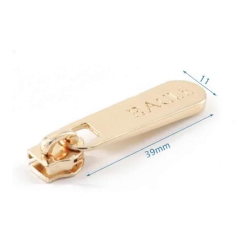 Classicstyle zipper slider puller featuring a goldfinished metal construction, designed for elegant women’s handbag hardware.
