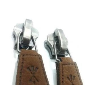 This fashionable leather zipper puller is crafted from durable zinc alloy metal with a plated finish. Featuring a non‑lock mechanism and nickel‑free construction, it is designed for garments and fashion accessories. The customized size option makes it versatile for different applications while adding a stylish decorative touch.