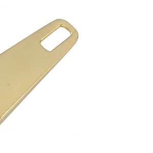 This custom metal puller is crafted from durable zinc alloy with a gold‑plated finish. Designed as a decorative clothing accessory, it adds both functionality and stylish appeal to garments. Strong, nickel‑free, and washable, it combines durability with premium design, making it ideal for fashion applications.