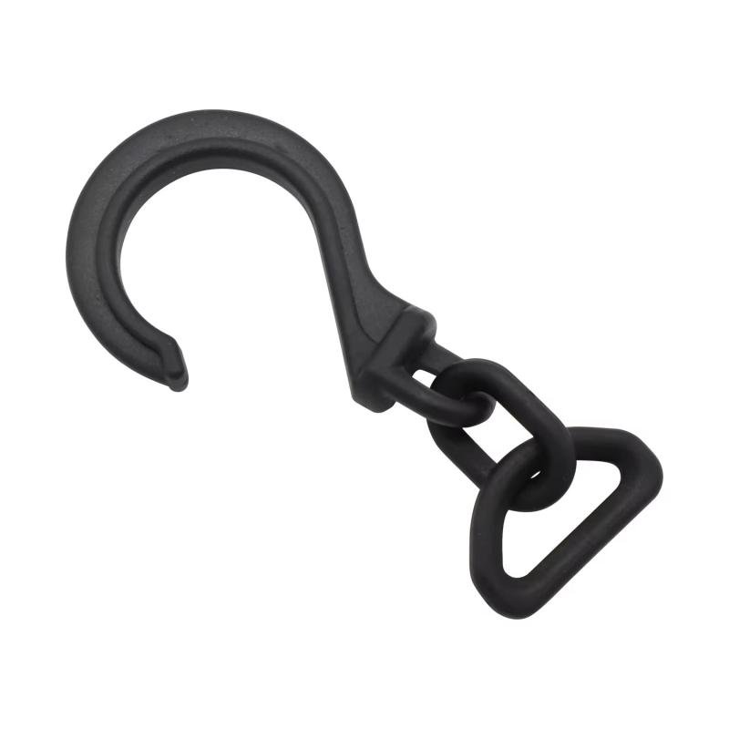 This double plastic swivel clasp snap hook is made from durable plastic, ideal for backpacks, handbags, and motorcycle bag accessories. Lightweight, strong, and user-friendly, it provides secure attachment for straps and accessories.