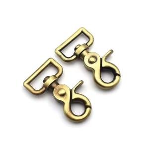 Durable nickel plated metal swivel snap hook designed for handbags, straps, and bag accessories. Made from strong zinc alloy, brass, iron, or stainless steel with smooth rotation and secure trigger closure. Available in customized sizes with eco-friendly, waterproof, and lightweight construction for long-lasting use.