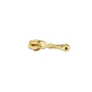 Highquality golden metal zipper slider with puller made from durable zinc alloy. Ideal for luggage, clothing, and shoes, featuring CE certification for quality assurance.