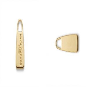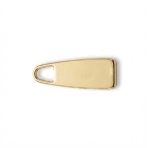 Goldcolored metal zipper puller designed with durable construction for luggage and handbag hardware applications.