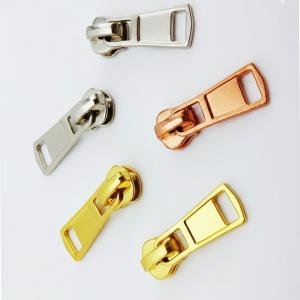 This metal zipper slider puller is made from durable brass with plating finish. Designed for garments, bags, shoes, and other fashion items, it features an auto lock mechanism for secure fastening. Nickel‑free and customizable in size, it is ideal for fashion and commercial applications.