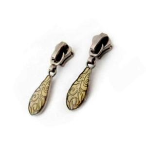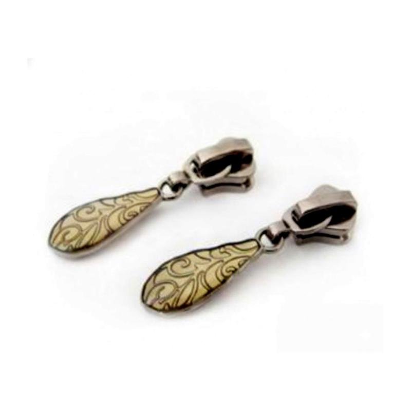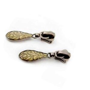 This custom zipper slider and puller is crafted from durable zinc alloy metal with a plated finish. Featuring a clear gel effect and nickel‑free construction, it is designed for handbags, clothing, leather overcoats, and fashion accessories. The customizable size option makes it versatile for different applications while maintaining both style and functionality.