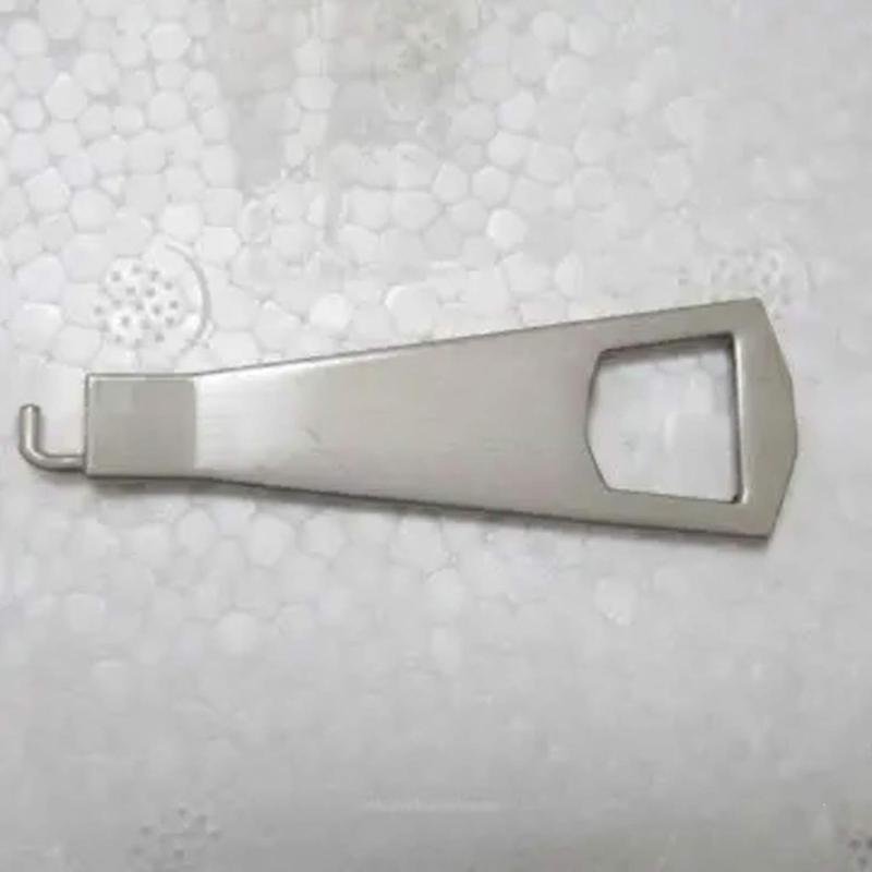 This zipper puller and slider is crafted from durable zinc alloy with a plated finish. Designed with a non‑lock mechanism, it is nickel‑free and safe for garments, bags, shoes, and other textile applications. Compact and customizable, it combines decorative appeal with reliable functionality for fashion and commercial use.
