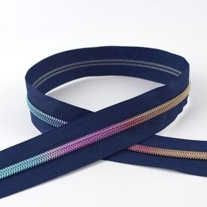 5# nylon long chain zipper designed for smooth operation and custom cutting, suitable for bulk supply and DIY sewing applications.