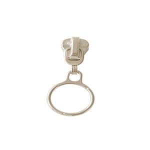 This stylish ring zipper head puller is crafted from durable metal and designed for fashion coil zippers. Suitable for garments, bags, home textiles, shoes, and luggage, it combines functionality with a sleek commercial style. Featuring a oneway auto lock slider, it ensures smooth and secure fastening. Available in multiple finishes including nickel, antibrass, brass, black nickel, and painted options, this zipper slider offers both durability and versatility for a wide range of applications.