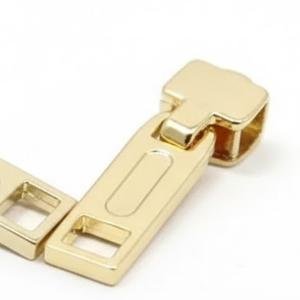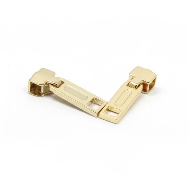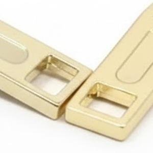 Tiny rectangleshaped metal zipper puller designed with strong metal construction for durable handbag hardware applications.