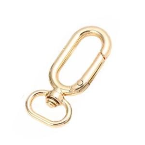This zinc alloy snap hook features a plated brass finish with trendy oval ring design. Perfect for handbags, lanyards, keychains, dog leashes, and DIY bag accessories, it is durable, stylish, and ideal for fashion-forward projects.